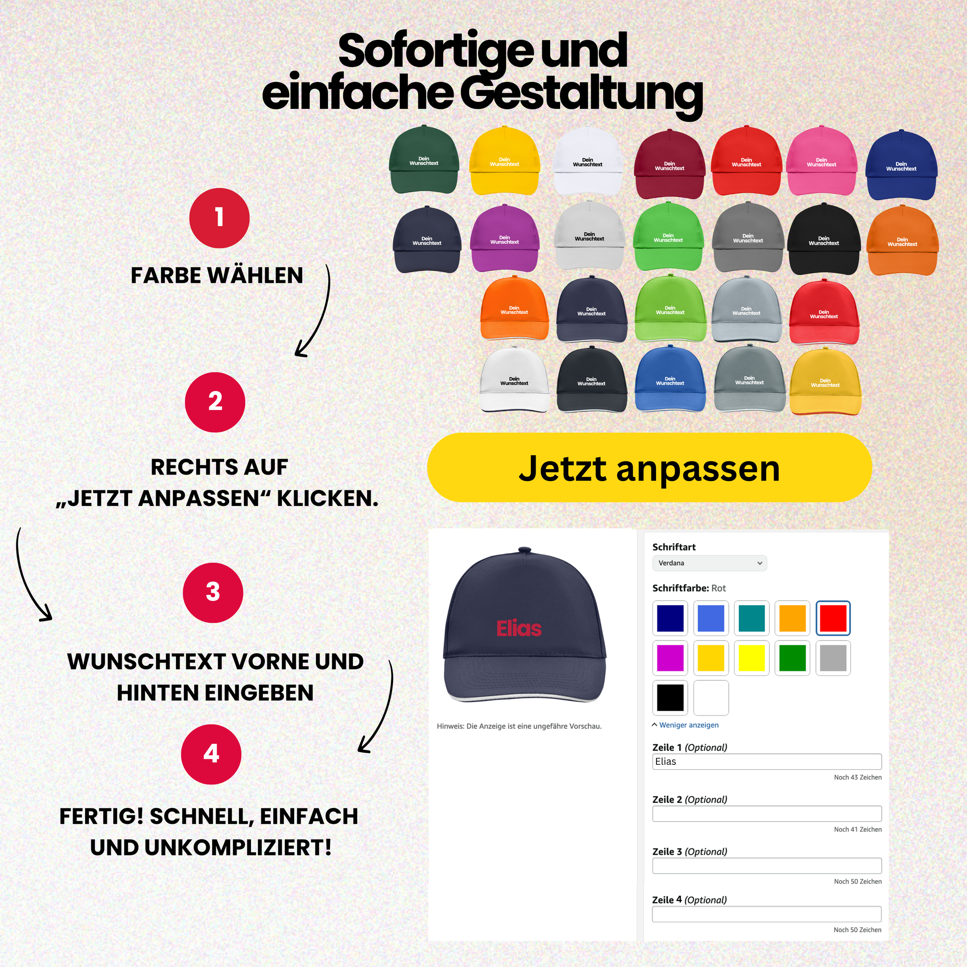 - Bestelle: Gib deine Bestellung auf und freue dich auf dein individuelles Cap.