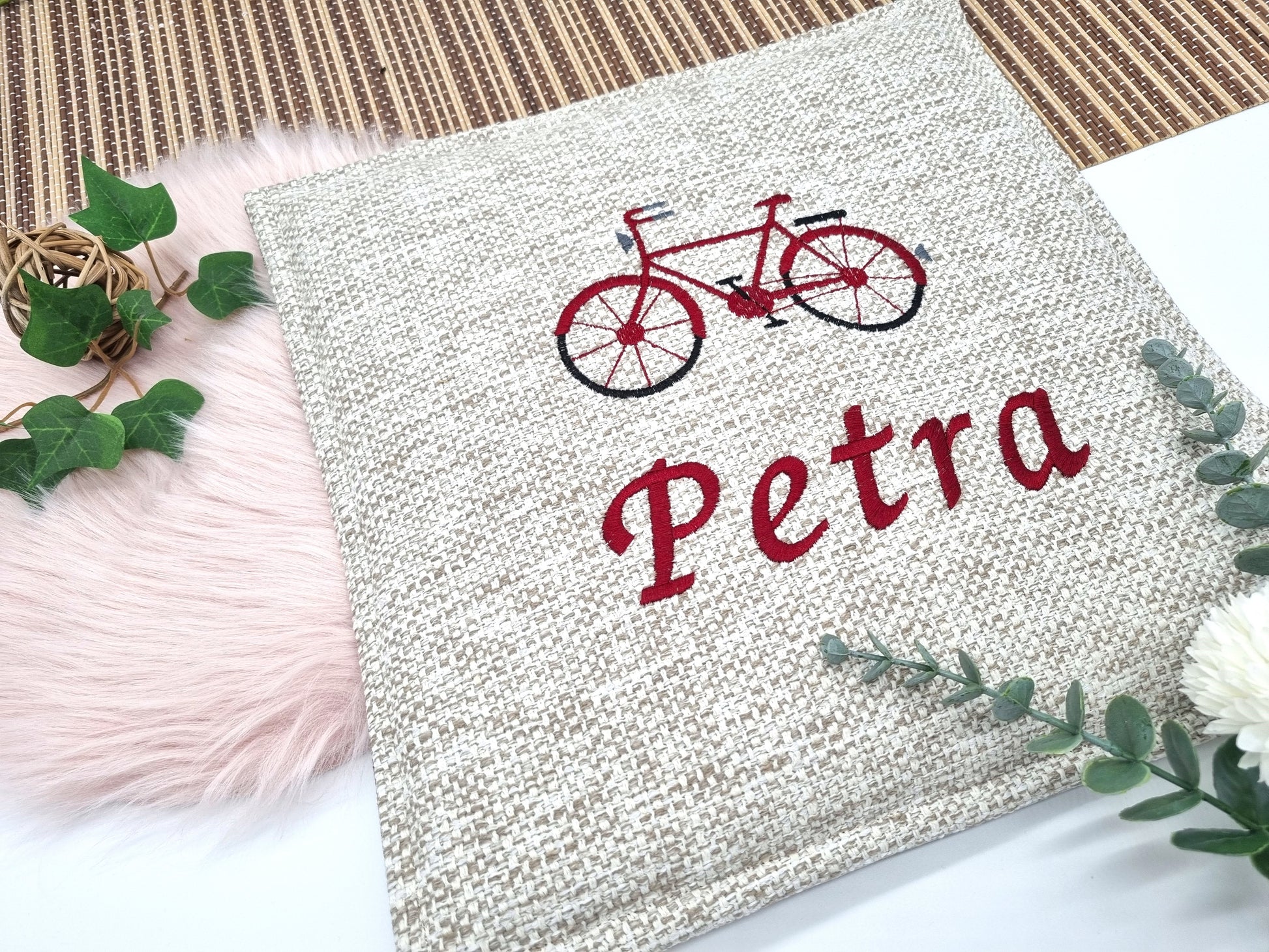 HANDGENÄHT UND PERSONALISIERT – Alle Kissen sind selbst genäht und werden durch eine personalisierte Bestickung mit Eurem Wunschtext und Wunschmotiv bestickt