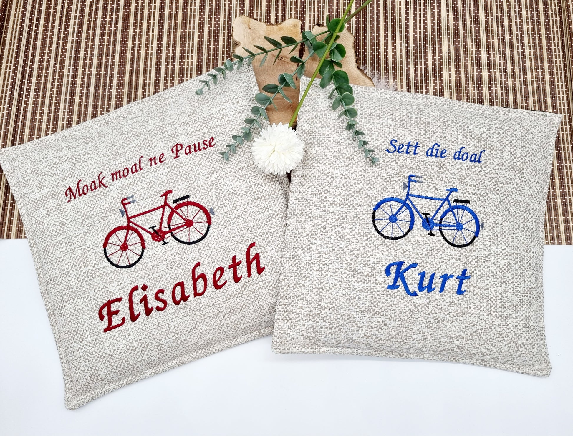 Ob für Jäger, Fahrradfahrer, Fußballer, Blumenliebhaber oder Kinder, für Jeden ist etwas dabei. Einfach nach freien Wünschen kreativ gestalten. Auf Wunsch können wir das Kissen natürlich auch mit einem Vereinslogo oder Firmenlogo besticken. Sendet uns dazu einfach eine Nachricht per Whatsapp/Email.