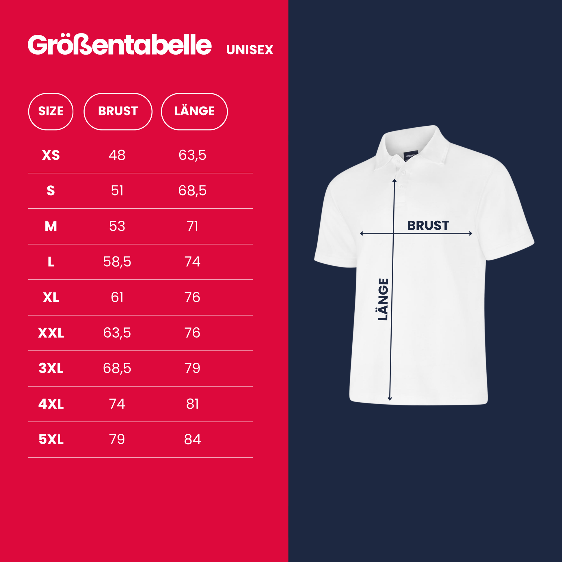 - Große Auswahl: Wähle aus verschiedenen Poloshirt-Farben, vielen Schriftfarben, und Größen für Erwachsene von XS - 4XL.